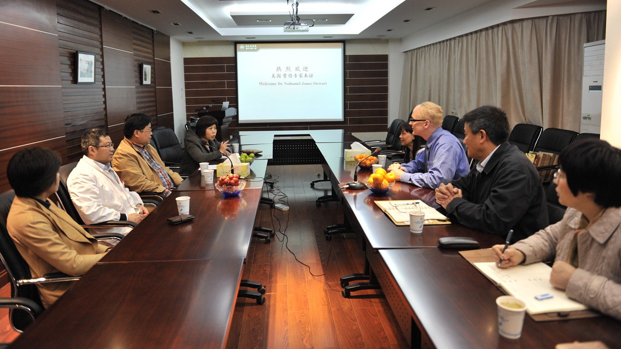 3月20日,美国著名骨伤与运动医学专家Dr. Nathaniel James Steward M.D来院访问、交流。医院党委书记曹毅、副书记黄琦,骨科负责人、国际交流中心负责人等参加了交流会。