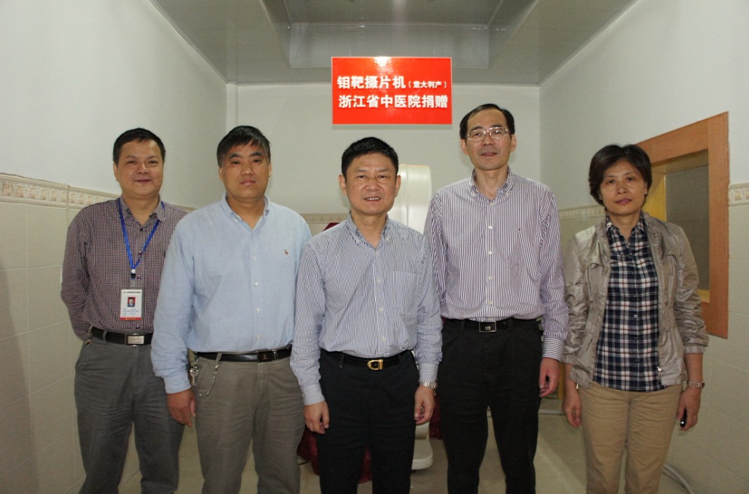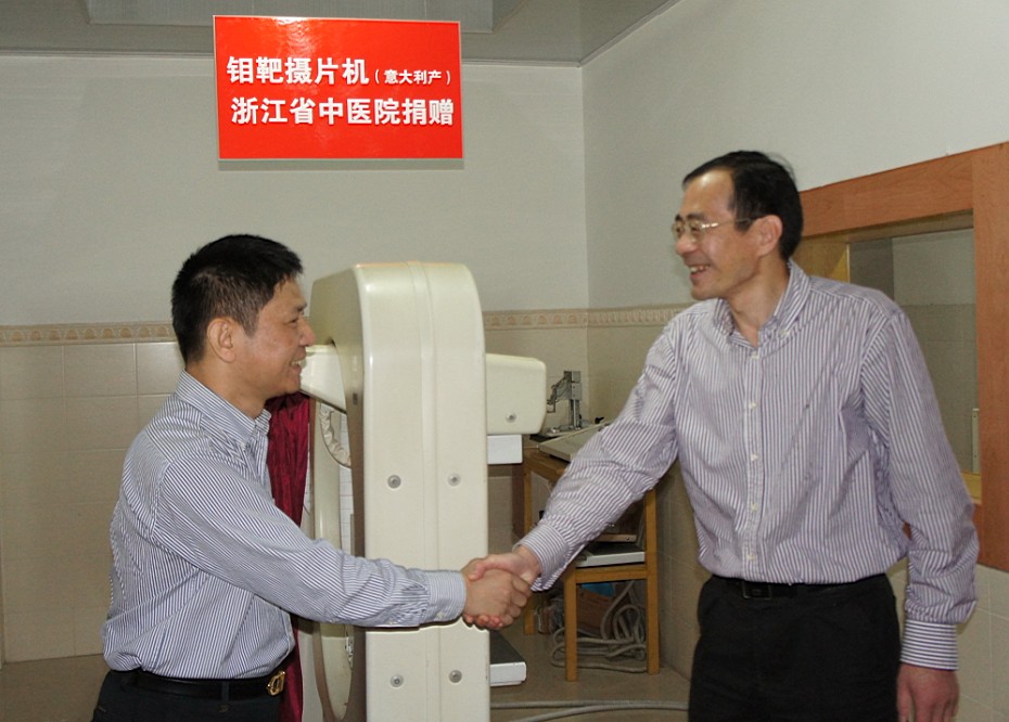 金秋十月,秋高气爽,位于浙西山区的遂昌县中医院人声鼎沸,10月9日上午10时,该院放射科正在举行浙江省中医院钼靶机捐赠仪式。参加仪式的有我院院长吕宾、党委副书记黄琦和随行专家,遂昌县卫生局局长杨全俊,遂昌县中医院院长马翔华、书记巫智强以及医院代表。