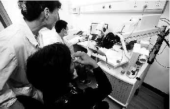 图为浙江省中医院医生在给一位哮喘病人做慢肺活量检查。