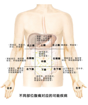 这里说的左右,是我们大家真正的左手边右手边,也即右手对应的腹部是右腹部,左手对应的是左腹部,大家看图的时候不要弄反了。
