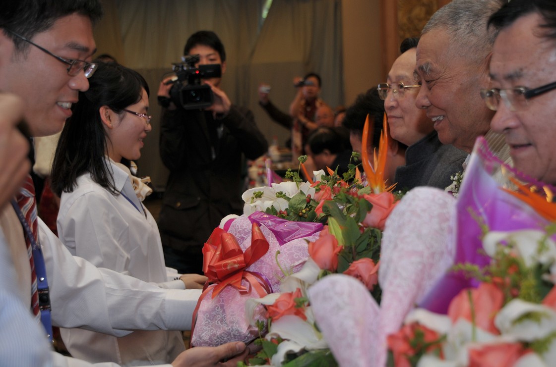 庆典上,医院还为历届老领导、离退休职工代表以及见证医院历史的最年长的退休老职工、百岁老人——傅梅生献花,献上全院职工真诚的祝福!同时,庆典现场还为20位获得“感动你我省中优秀员工”称号的员工颁发了荣誉证书和奖杯。
