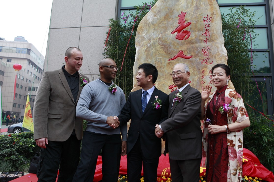 纪念石露出“庐山真面目”——1986年沙孟海为我院的题词——“寿人寿世”四个大字,震撼了许多在场的领导、来宾和外国友人,他们纷纷在纪念石前拍照留念。