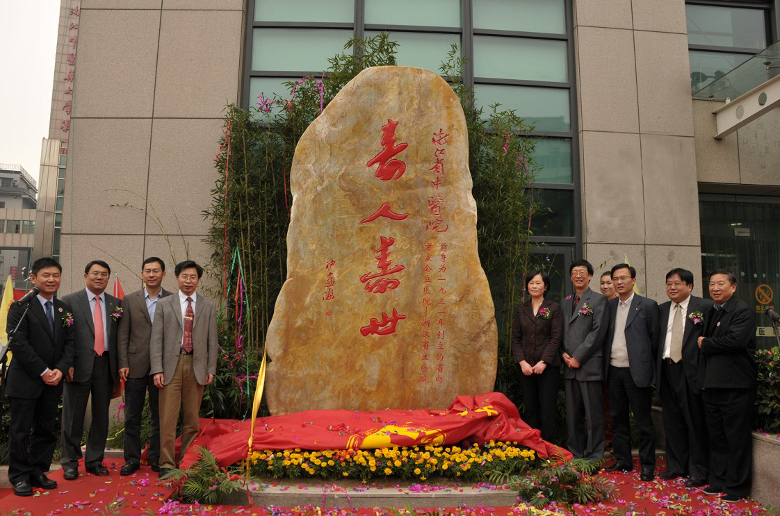 在热烈的掌声和礼炮声中,省人大文教卫副主任肖鲁伟、省卫生厅厅长杨敬、浙江中医药大学党委书记孙秋华、校长范永升为纪念石揭幕。医院院长吕宾在纪念石前发表了热情洋溢的讲话,他表示院庆纪念石的落成,对于我们铭记举医为公的办院理念,发扬“精诚、仁和”的院训有着重要的历史意义。医院自建院以来,始终奉行公立医院的精神,仁心仁术,济世救人。如何将之更好地传承下去,是我们一直以来追求的目标和努力的方向。这次揭幕仪式作为优良传统的深刻教育和精神境界的升华洗礼,将鼓舞全院职工不忘历史、不负重托、不辱使命,身体力行地实践寿人寿世的医学精神,把医院建设成为服务于大众的健康家园。