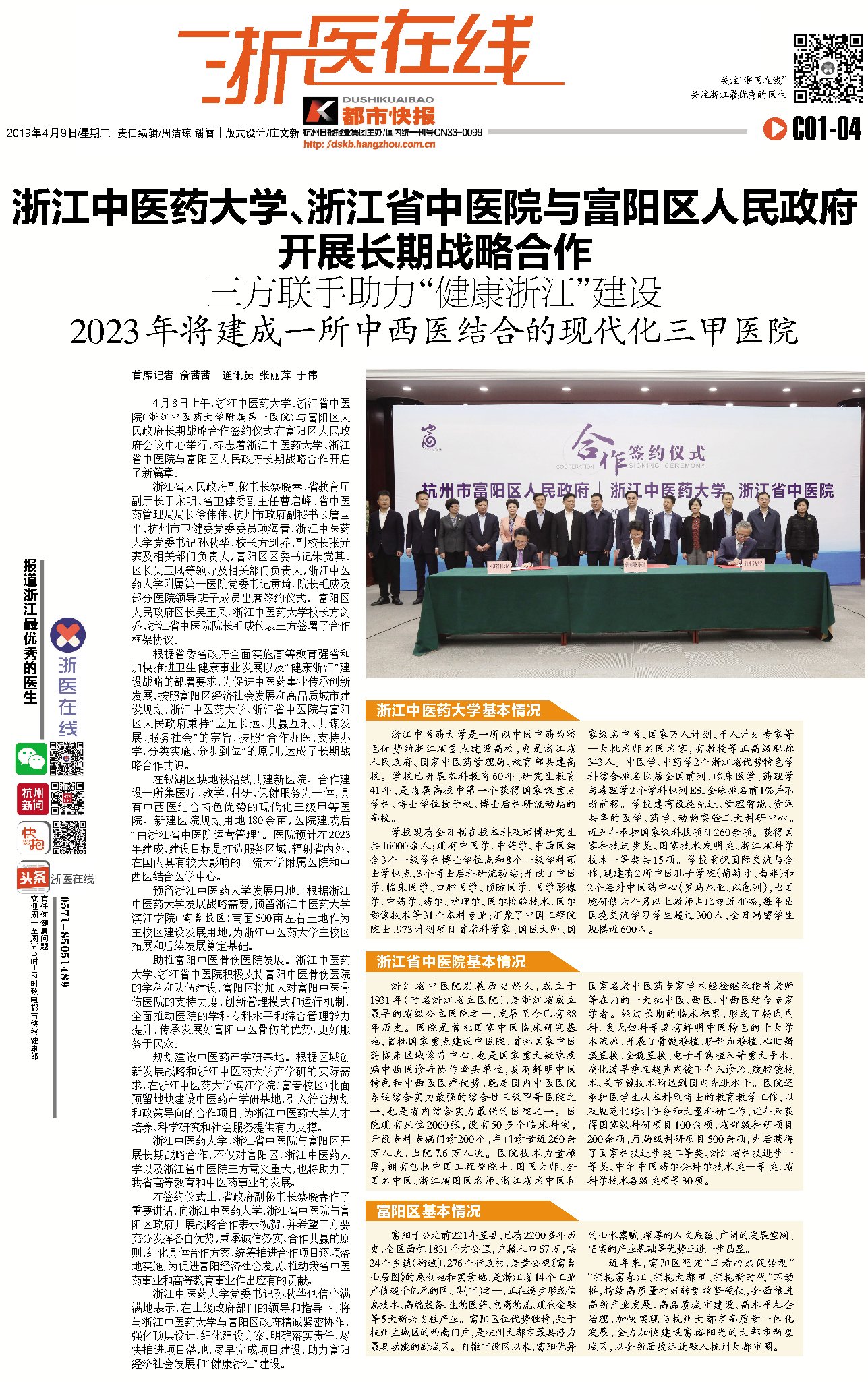 【都市快报】三方联手助力“健康浙江”建设