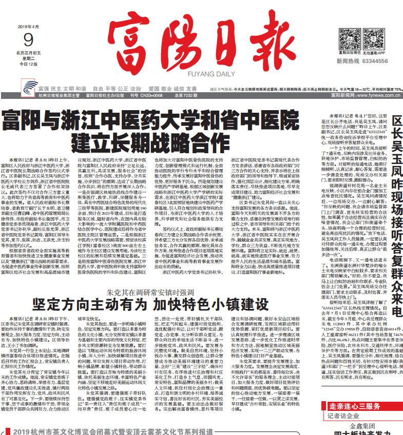 【富阳日报】富阳与浙江中医药大学和省中医院 建立长期战略合作