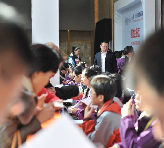 图:我院志愿者在会议注册区进行大会服务