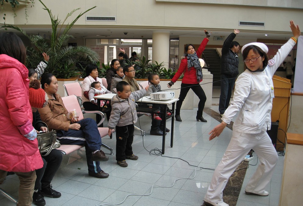 这些年来,下沙院区一直都定期举办“健康大讲堂”活动,有时走进学校、社区,有时走进企业。为了更好地宣传健康的生活理念,同时方便病人听课,近几个月来,院区每周一上午在门诊二楼大厅的花园中增设了“健康大讲堂”,这一尝试在病人和家属中获得了良好的口碑,赢得了病人的广泛欢迎。各科室专家在结合专业专长的基础上,精心挑选,为病患准备了一系列实用、应景的主题课程,比如:如何徒手心肺复苏;冬季宝宝得了常见病,家长该如何为其推拿,以减轻宝宝的病情;又如:教你一套颈肩保健操,让你远颈肩疾病;春天到了,春季养生的健康话题……许多病人在花园中边听课,边记着笔记,讲到实际操作的内容时,无论是大人还是小孩,都跟着医护人员一起动起来,成为了医院中一道亮丽的风景线!