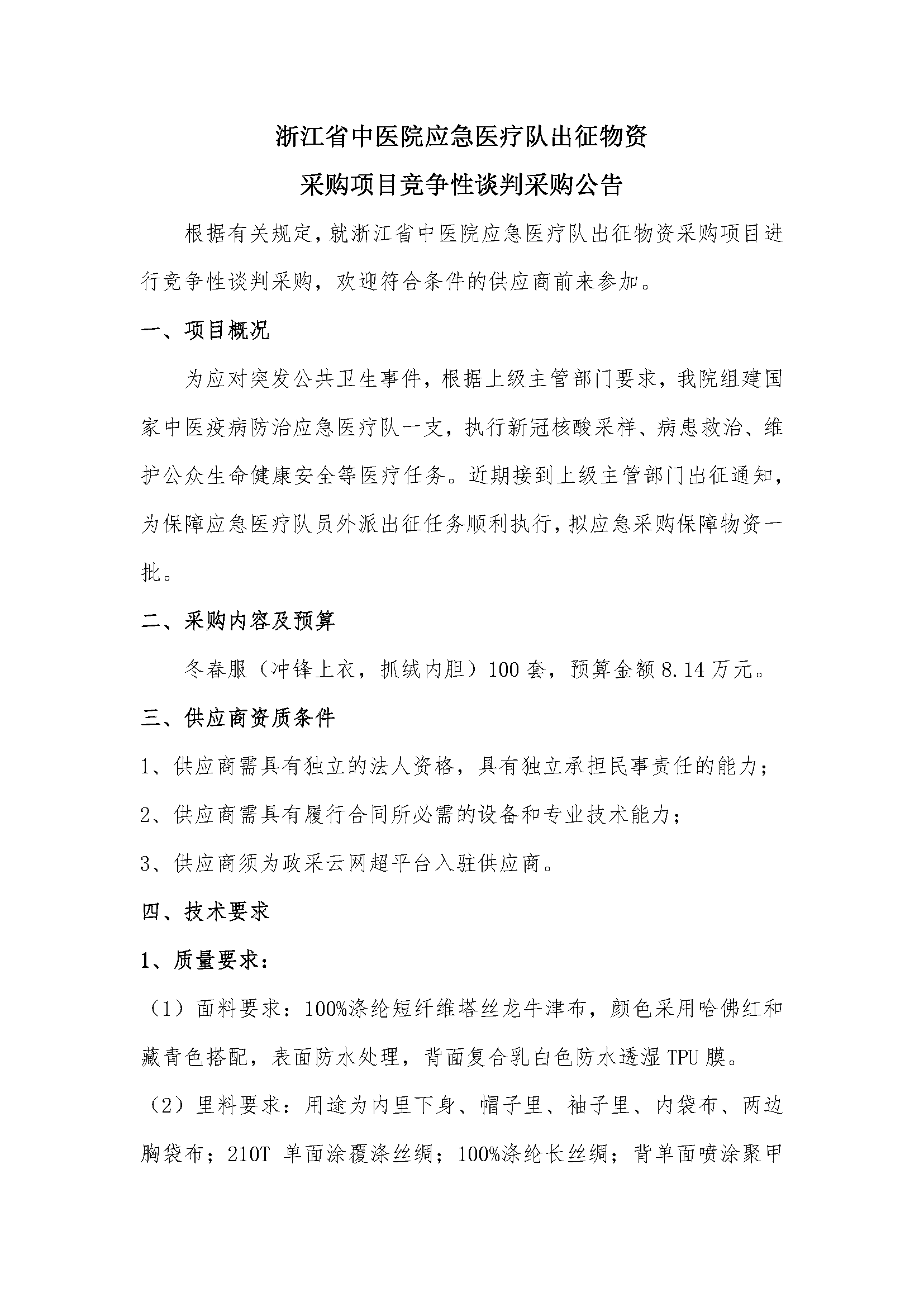 浙江省中医院应急医疗队出征物资采购项目竞争性谈判采购公告