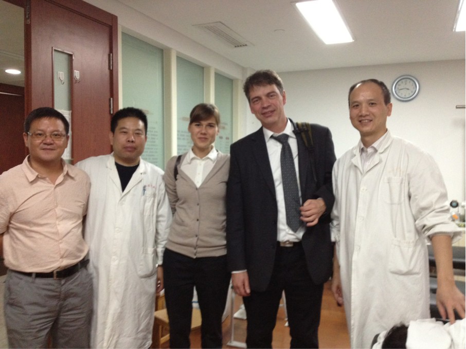 施罗德博士是西医神经内科专家,同时也是一位中医针灸的从业人员,目前正在从事中医针灸经络学说与西医神经解剖学关系的研究。此次来我院参观,施罗德博士专门参观了我院的针灸科、推拿科、名医馆等中医特色科室,并与我院同仁进行了交流。
