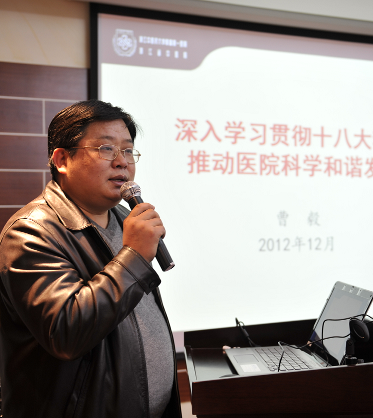 12月27日,医院业余党校在行政中心一号会议室正式开班.医院党委书记曹毅为党校作了题为“深入学习贯彻十八大精神,推动医院和谐发展”的首堂培训讲座。