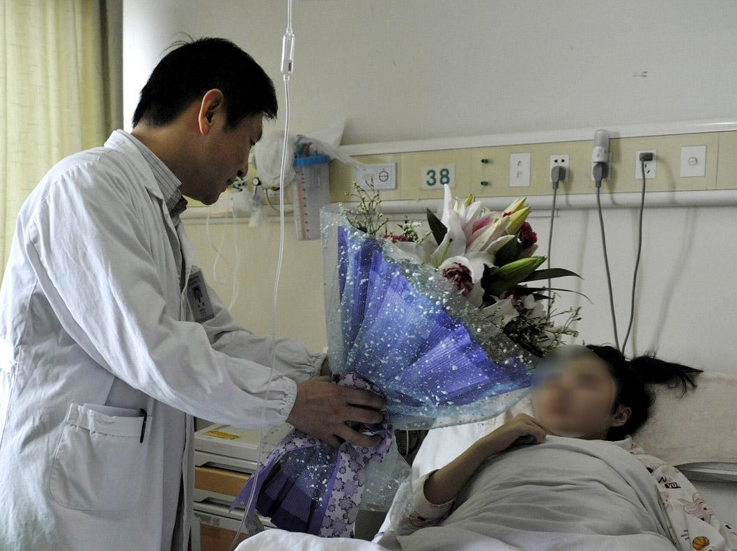 在献血现场,医院院长吕宾表示,“精诚合作成就卓越团队 仁和济世呵护人类健康”这是医院的核心价值观,也是省中人寿世寿人的宣言。血液是生命的源泉,爱心是生命的阳光,无偿献血使许多即将枯萎的生命再次焕发了新的生机,无偿献血架设起了人与人之间最雄伟的友爱桥梁。在病房内,吕宾院长亲切看望了患者小刘,并送上了鲜花和祝福,他表示,医院将竭尽全力救治每一名患者,仁爱之心存于每一名省中人胸中,当他人需要时,我们都可以无私奉献,为爱捋袖。
