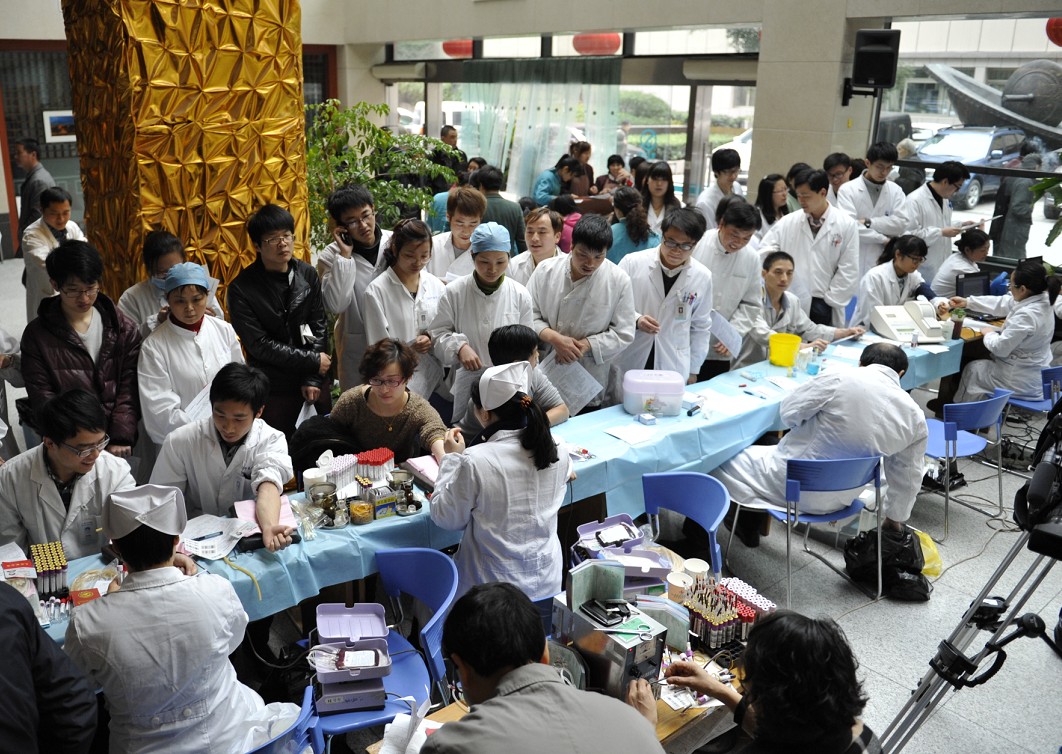 闻讯后,医院迅速向全院职工发布消息,号召职工踊跃参加无偿献血。27日当天,医院湖滨、下沙两院区共有医生、护士、行政、后勤人员及正在医院实习(进修)学生和医生225人参加献血,当日献血总量为达49540毫升。