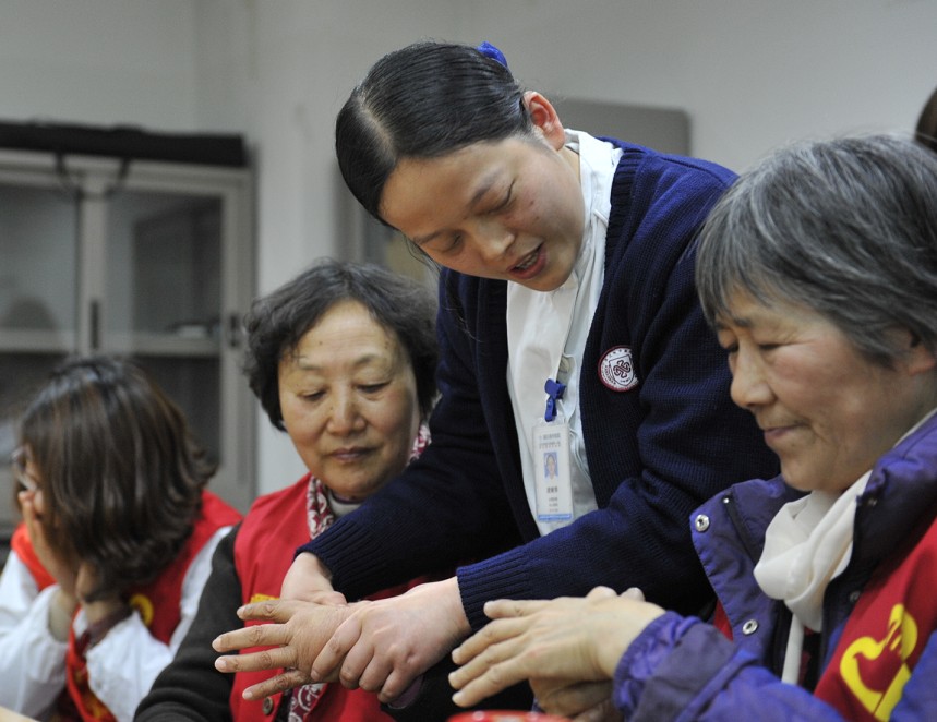 培训结束后,70岁的马大姐和59岁的蒋大姐,率先进入病房开展服务,她们既可以为无家属照顾的卧床病人服务,也能进行简单的床边陪护、陪送检查以及简单的穴位按摩等中医护理,而且还能为慢性重症患者、术前患者进行心理疏导,利用自身的相关治疗经验,与患者进行设身处地的沟通,缓解患者的紧张、绝望、恐惧等负面情绪,树立战胜疾病的信心。