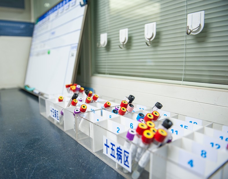 针对一直以来住院病房的标本架都是塑料架子,次日晨抽血、当日急诊抽血的试管都放在一起,空试管、待送检试管均放在同一个架子上,一不留神容易出错现状,新的标本架按照科室的床位数重新设计制作,每格标注床号,剩余的四、五个格子张贴红色醒目标签“急诊抽血”。次日晨抽血的试管按照患者床号放置在对应的方格内,急诊抽血的试管放在“急诊”的方格内。待送检血标本不再放回试管架,而是刷过条码后封包送检。