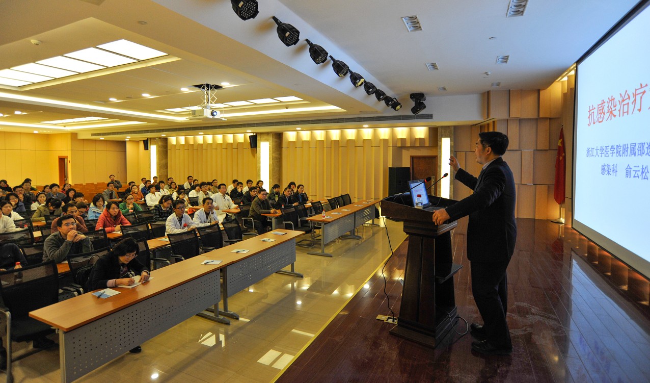 4月2日晚,由著名感染科专家俞云松教授主讲的医院感染性疾病诊治系列讲座首场报告在湖滨院区学术报告厅举行。医院副院长裘华森,ICU、呼吸、肿瘤、消化、感染科等临床科室医护人员,院办、护理部、科教部等职能部门负责人,进修医生、实习生等200余人参加了讲座。