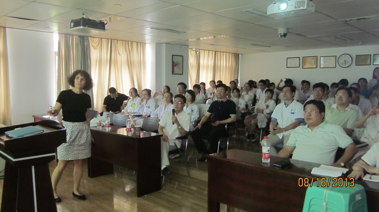 8月16日下午3点,由我院肿瘤中心承办的中外学术合作交流会议在医院医学影像科示教室。会议邀请了知名学者Jacqueline Bromberg F教授作演讲,随行有美籍华人资深科学家Sizhi Paul Gao作交流翻译。医院党委书记曹毅出席了会议,代表医院致热情洋溢的欢迎词并提出了“交流、合作”的期待。