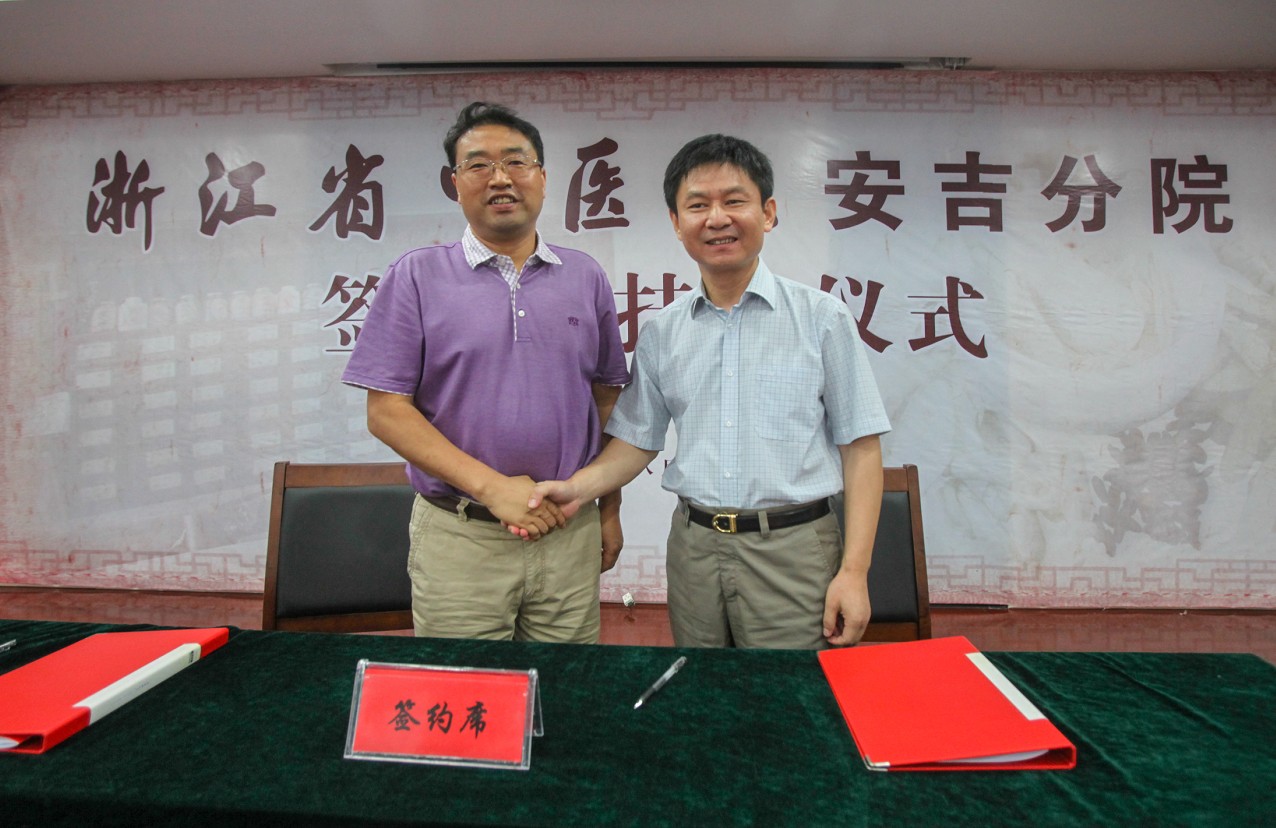 8月22日,医院与安吉县人民政府签订了合作医疗协议书。浙江中医药大学副校长方剑乔,医院管理处副处长陈华,湖州市卫生局副局长魏明,安吉县人大常委会副主任黄先国、副县长任贵明、县政协副主席张为华,医院院长吕宾、党委书记曹毅、副院长沈敏鹤、党委副书记黄琦等领导出席了签约仪式,并为浙江省中医院(浙江中医药大学附属第一医院)安吉分院揭牌。这标志着我院与安吉县中医院正式结成紧密型合作办医关系,也是继我院与松阳县人民医院、松阳县中医院之后,医院与基层医院的再次结缘。