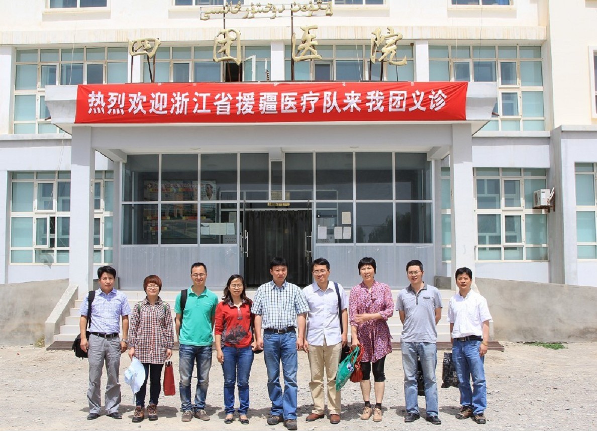 在阿克苏期间我们经常参加援疆指挥部组织的义诊、巡回医疗活动,为当地的医护人员带去新技术、新观念和新理念。工作之余,我们援疆干部都集中住在援疆楼里,统一管理,每个人一个房间。一楼有食堂,大家一起用餐,这里还有健身房可以锻炼身体。指挥部为了我们的安全,规定晚上11点(这里和浙江有两个小时的时差,相当于浙江的晚上9点)要点名,禁止单独外出,上班是由指挥部的车统一接送。周末,我们会跟随当地的“驴友”去阿克苏周围的戈壁、沙漠、草原及雪山玩。来到了新疆才知道中国有这么大,也是来到了新疆才知道中国有这么美,真是大美新疆啊!多么希望这片美丽的土地在千千万万的援友及全国各族人民的支援与建设下,变得和内地一样富饶与安定。