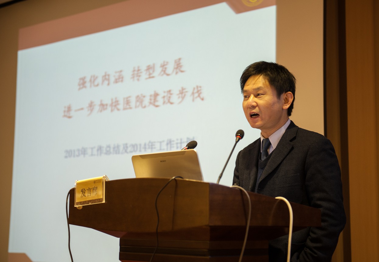 会上,医院院长吕宾作了《强化内涵 转型发展 进一步加快医院建设步伐》的主题报告,回顾总结了我们医院各项工作的发展情况及取得的成绩,分析了医院面临的形势,提出了2014年的工作中心和目标。党委书记曹毅作了《全面推进服务型党组织建设 树立医院服务型党建品牌》的报告,提出了服务职工、服务患者、服务医院发展、服务社会的党务工作理念。沈敏鹤副院长、毛威副院长分别作了《年度医疗运作分析》及《蓄势待发——下沙院区发展工作汇报》的专题报告,高丽娟总会计师对2013年的财务运行状况进行了分析。会议还就如何破解学科发展中遇到的难题和提高医院管理效能展开了分组讨论,提出了很多切实可行的意见和建议。