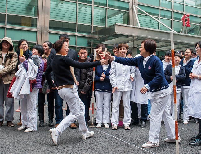 垫乒乓球个人赛,参赛灵活,容易操作又不失乐趣,吸引了两院区近千人参加。而50米男女混合接力赛以各工会小组为单位组队,每对老、中、青各年龄段职工共16人,迎面接力参加比赛。每位队员都有自己的风格、表情和速度,比赛异常激烈而精彩,现场一派庆祝节日的喜悦。医院摄影协会为活动记录了点点滴滴,让我们一起回味这些精彩的瞬间,同时祝贺技一工会小组、内一工会小组、内三工会小组、内二工会小组、行政一工会小组以及下沙三工会小组分别获得团体赛前六名。