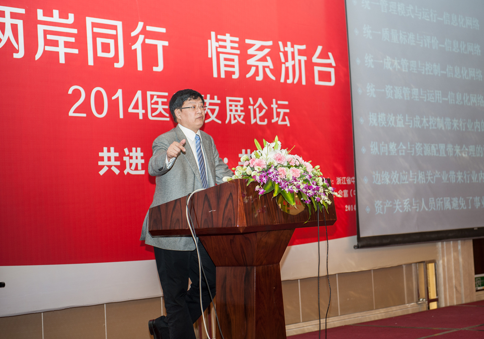 4月9日,由我院和台湾中华卫生医疗协会共同主办的“两岸同行 情系浙台”2014医院发展论坛在杭州胜利召开。浙江省人民政府台湾事务办公室张正镛副主任、浙江省卫生和计划生育委员会马伟杭副主任、浙江中医药大学方剑乔副校长应邀出席了论坛开幕式并致辞。来自台湾的4位医院管理专家与大陆的5位同行作了专题报告。来自省内省市县各级医院院长、专家及本院管理干部共300余人齐聚一堂,深入探讨了新形势下医院的管理、改革与发展。