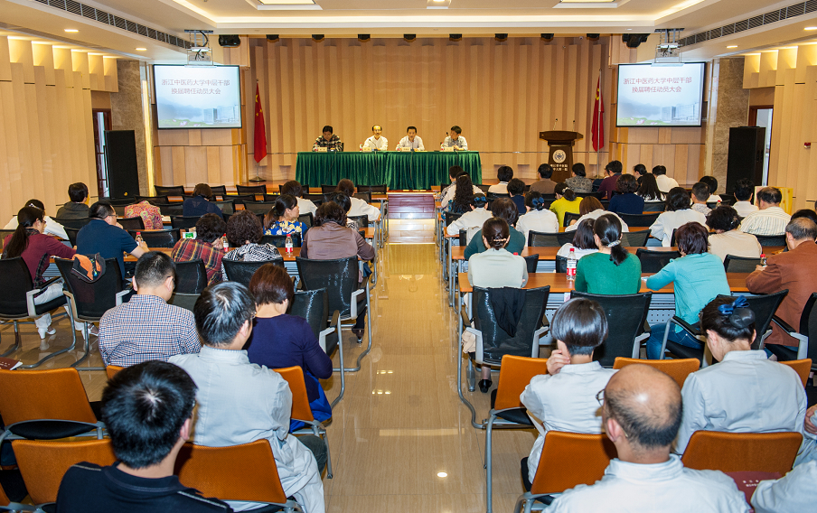 5月9日,医院在湖滨院区八楼学术报告厅召开了浙江中医药大学中层领导干部换届聘任工作动员大会。学校党委副书记熊耀康,党委委员、组织部部长陈刚出席动员大会并讲话。医院党政领导班子成员、全体中层干部、民主党派主委、各科室副高及以上代表参加了会议。会议由医院党委书记曹毅同志主持。