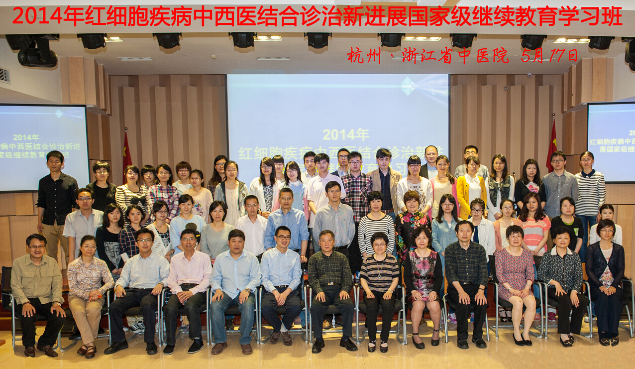 5月16日-18日,由我院国家中医临床研究基地(血液病)和浙江省中医药学会联合主办的2014年“红细胞疾病中西医结合诊治新进展”继续教育学习班在杭开班。来自国内各兄弟单位临床、检验、科研等同道100余人参加了本次学习班。
