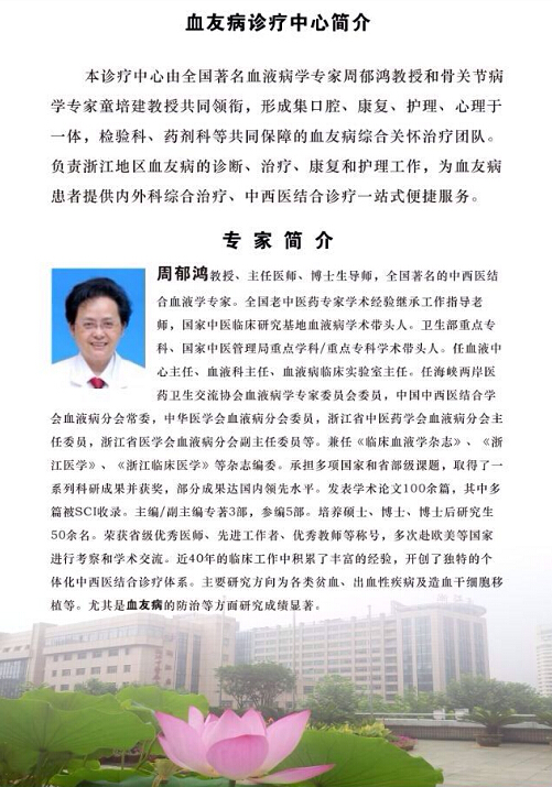 血友病是一组以三高(出血率高、致残率高、死亡率高)著称,以遗传为主的凝血障碍性疾病。典型的血友病患者,在一、二岁时就有自发或轻度外伤后出血,反复出血造成血友病性关节炎致关节变形,甚至危及生命,给患者及家庭带来了极大的身心痛苦和经济负担。以往,西医除出血时采用替代疗法外,别无它法。近来年,中西医结合治疗血友病发展迅速,已形成系统治疗方案。国家中医临床研究基地(浙江省中医院)、浙江省中医药学会血液病分会、浙江省红十字会、浙江省血液中心联合组织血友病之家联谊会。本次联谊会主要介绍如何有效的规范的治疗,中医辅助治疗,康复自我护理及腿部伸展不开的对策等。届时将组织大型义诊,有血液、骨伤、口腔、康复、护理、药理、检验等多位全国中西医结合全国著名专家周郁鸿、童培建、沈一平等为您答疑解惑,并为患儿赠送精美礼品。欢迎血友病患者、家属届时参加。