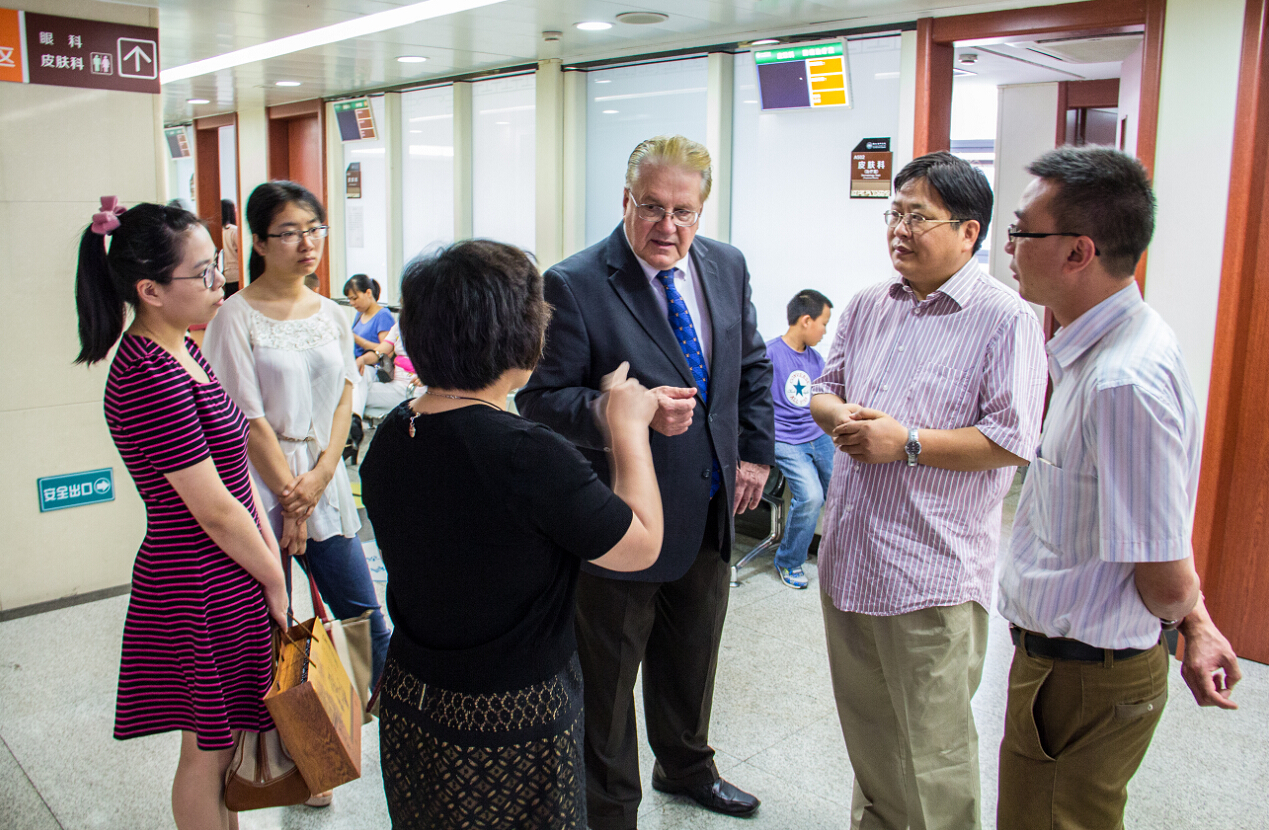 在交流中,曹毅书记向来访客人介绍了我院的医疗特色与优势、中西医结合治疗各类皮肤病、以及近年来取得的临床科研成果,并陪同来宾参观了医院皮肤科门诊、实验室等。Prof. Jouni Uitto表示,医院先进齐全的实验室设备,皮肤科门诊量之多、病种之全面给他留下了深刻印象,尤其是对中医药在皮肤病领域的特色诊疗十分赞叹。