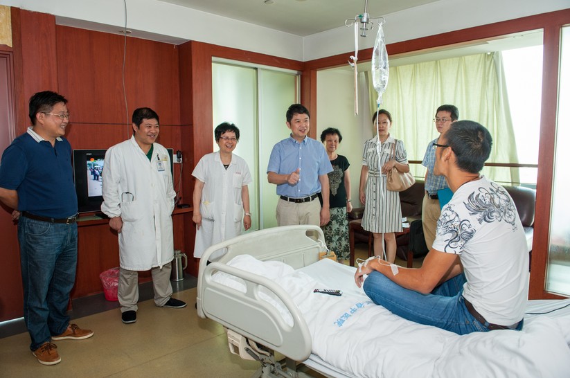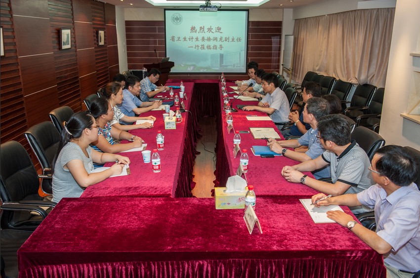 7月31日上午,浙江省卫生和计划生育委员会副主任徐润龙,中医药管理局局长徐伟伟一行5人来院调研了中医药工作。调研中,一行人在医院院长吕宾、党委书记曹毅等陪同下参观了院史陈列室,走访了国家中医临床研究基地血液病基地、中医特色护理模式病房、名中医工作室等,并在行政中心召开了座谈会。