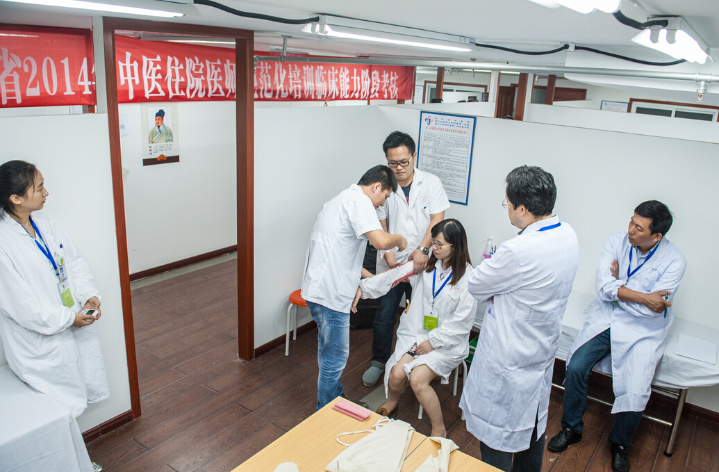 8月31日,2014年浙江省中医住院医师规范化培训临床能力阶段考核工作在我院顺利举行。参加此次考核的学生包括在浙江中医药大学附属第二医院(浙江省新华医院)、第三医院(浙江省中山医院),浙江省人民医院、浙江省立同德医院参加培训的2012届三年制中医规培医师,共计17人。本次考核由浙江省中医药管理局委托浙江省中医药学会统一组织,并由我院和浙江省立同德医院这两个考点具体实施。
