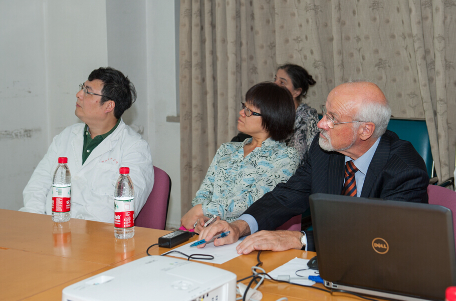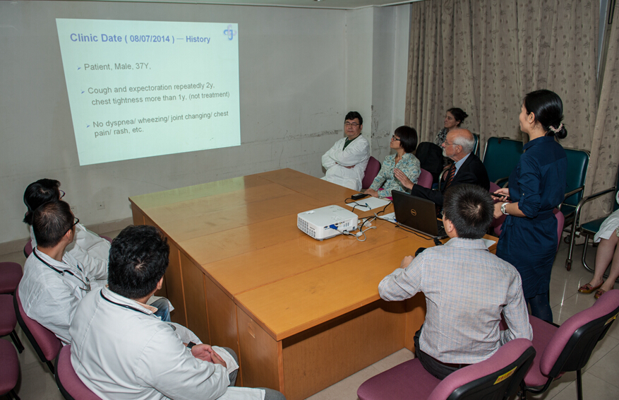 在医院呼吸内科杨莉副主任医师及洪辉华主治医师(两位医师曾先后前往Ruhrlandklinik医院跟从Costabel教授学习)的陪同下,Costabel教授协同夫人德国鲁尔医科大学病理科主任Guzman教授,同代华平教授一起,饶有兴趣的参观了我院院史陈列馆、肺功能室、中药房及国家级名老中医诊疗的过程。随后,Costabel教授与医院呼吸科专家进行了2例间质性肺疾病的病例讨论。