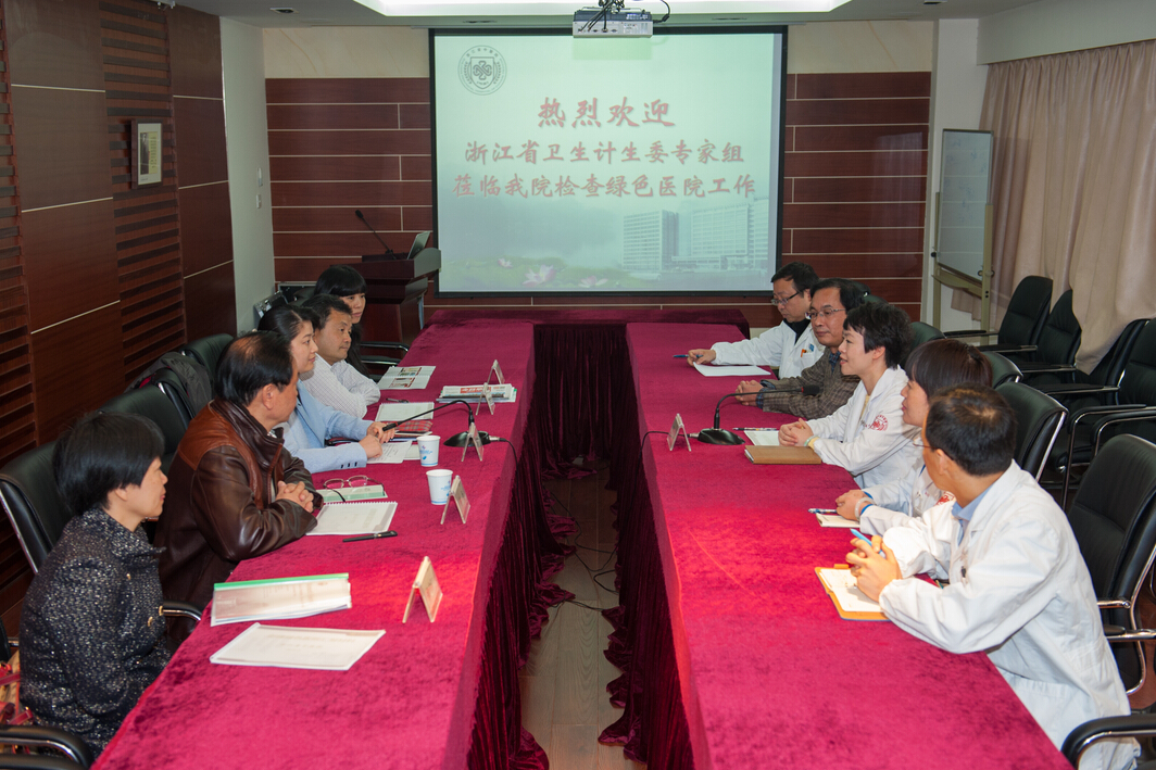 11月11日,浙江省卫生计生委创建“绿色医院”领导小组一行5人在省卫计委医政处骆晓琳组长的带领下来我院考核绿色医院创建工作。医院副院长祝亚男,医务部、院感科、后勤保障部、预防保健科等相关职能部门负责人参加了汇报会并陪同检查。