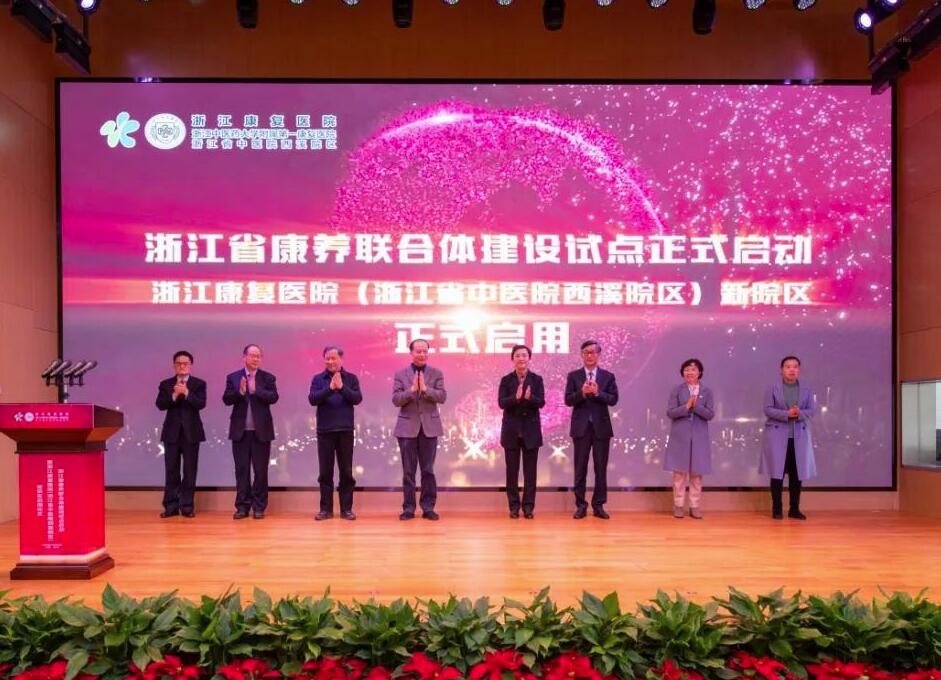2020年12月30日上午,浙江省康养联合体建设试点启动暨浙江康复医院(浙江省中医院西溪院区)新院区启用仪式在位于城西高教路1号的花园式新院区举行。省人大常委会副主任姒健敏,省政府副省长王文序,省政协副主席、党组副书记孙景淼,省直有关单位,杭州市各级部门,“康养联合体”试点单位代表,医联体相关单位,医康养领域专家、新闻媒体等各级领导莅临西溪院区参加启用大会,会议由浙江省民政厅副厅长余强主持。