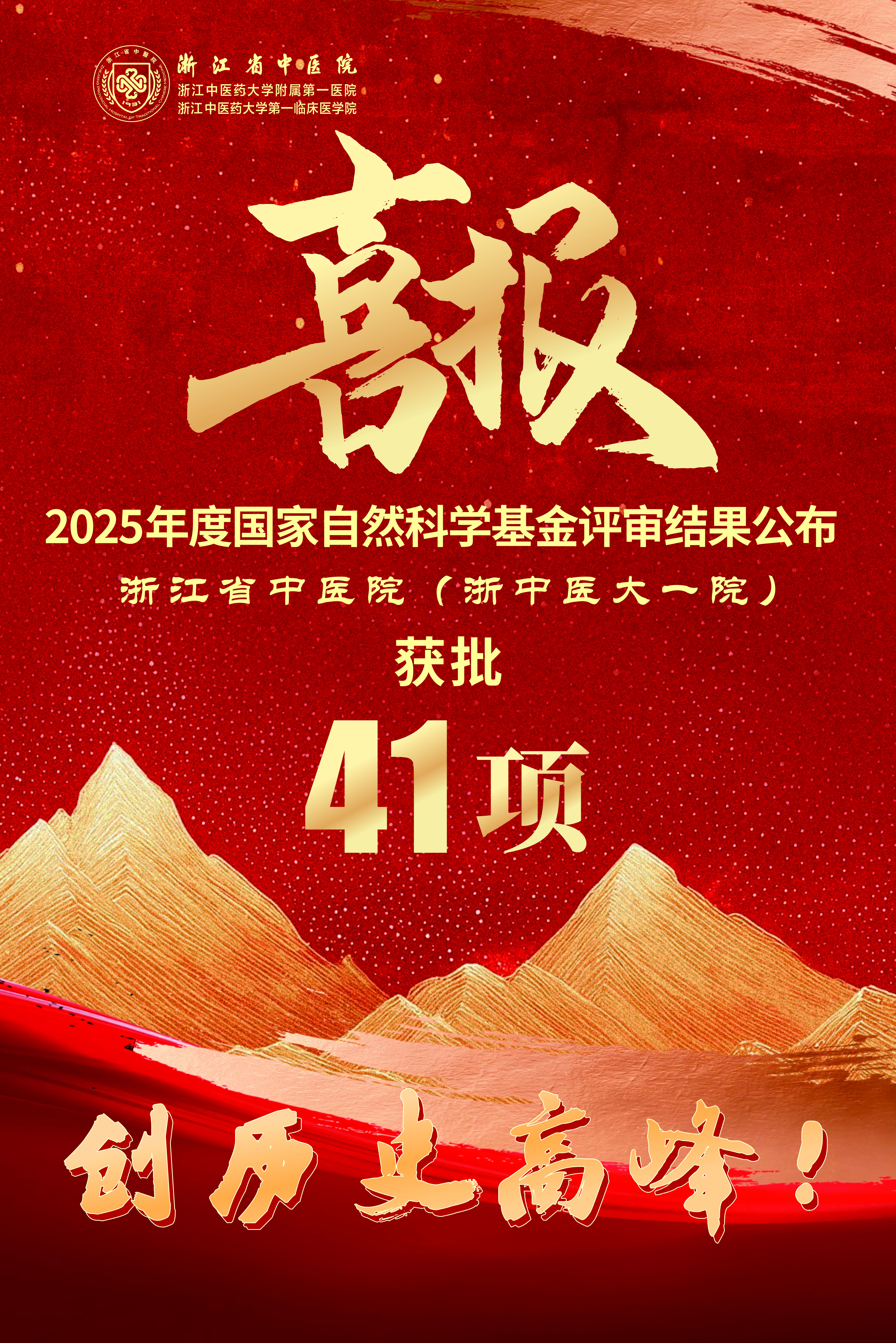 新突破,41项!浙江省中医院2025年国家自然科学基金立项再创新高!
