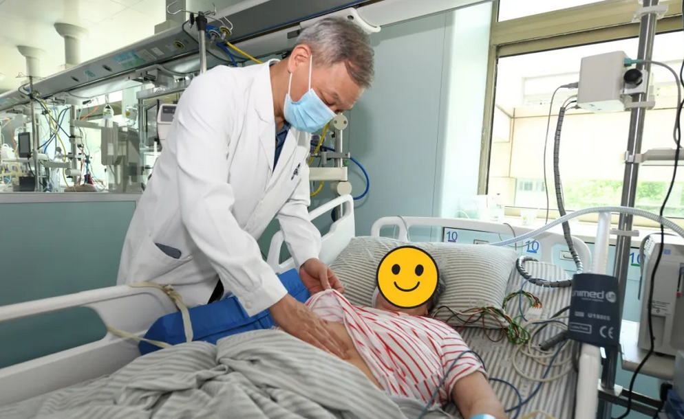 浙江省中医院ICU里,78岁的徐奶奶躺在病床上,眼巴巴对着前来查班的江荣林教授打趣:“下回来看我,记得给我带可乐嗷!” 图片