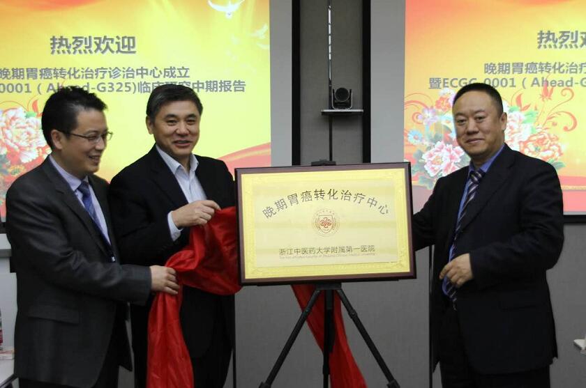 4月23日上午,我院“晚期胃癌转化治疗中心”成立仪式在门诊六楼会议室隆重召开。上海交大原副校长、上海瑞金医院院长、中国抗癌协会胃癌专业委员会主任委员朱正纲教授、哈尔滨医科大学附属肿瘤医院薛英威教授、中山大学附属肿瘤医院周志伟教授以及来自省内各地市胃肠外科专家30余人到会祝贺。成立仪式由医院副院长程向东主持。 在致辞中,程向东向与会专家们简单介绍浙江省中医院的简要情况。浙江省中医院是一所有着悠久历史和文化传承的省级大型综合性三甲医院。省内多家省市级医院的成立和发展都有省中医院的影子,可以说省中医院的发展史一定程度上也代表了浙江省公立医院的改革发展史。程向东说,今年正值建院85周年,本次活动选在医院内的会议室举行,一方面是为了更好的学术交流,另一方面也是为了让大家更好地了解省中医院,尤其是省中医院外科的综合实力。