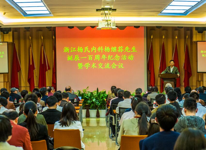 2016年3月30日正是“全国百年百名名老中医”杨继荪教授诞辰一百周年之际,医院隆重举行“浙江杨氏内科杨继荪先生诞辰一百周年纪念活动暨学术交流会议”传承杨老高尚的医德,高明的医道,高超的医术和寿人寿世的大医精神,弘扬他一生耕耘杏林,“医贵乎精”的大家风范,促进中医流派传承和中医药事业的繁荣发展。活动受到各级领导和各界同仁的高度重视和关注,浙江省卫生计生委副主任徐润龙,浙江省中医药管理局局长徐伟伟,浙江中医药大学校长方剑乔,浙江中医药学会会长肖鲁伟,浙江省中医院院长吕宾、党委书记曹毅、党委常务副书记黄琦等党政班子悉数出席会议。同时,还有幸邀请到了杨老102岁高龄的夫人朱洁云女士及其家属参加纪念活动,杨老的学术传承人,生前的老同事、老朋友等也全程参加了活动。活动由医院副院长高祥福主持。