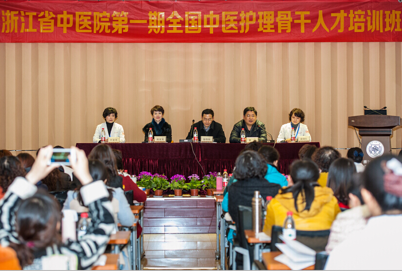 3月9日,我院第一期全国中医护理骨干人才培训班在湖滨院区学术报告厅正式开班。来自全国20个省市、自治区的54名学员参加了本期培训班。浙江省中医药管理局局长徐伟伟,医院党委书记曹毅、副院长祝亚男及护理部负责人等出席了开幕式并发言,护理部主任俞国红主持开班仪式。 开班仪式上,曹毅代表医院对各位远道而来的护理骨干表示热烈欢迎。他指出,医院非常重视中医护理特色优势的发挥,自2008年起,医院在全国首创中医护理模式病房,目前已成功创建12个,开展各类中医护理适宜技术30余项,建立中医护理临床路径30余个,并开设多项中医护理门诊,受到社会各界和业内同行的高度好评。医院也荣获首届“全国中医护理先进集体”、“全国中医优质护理先进单位”、“浙江省五一劳动奖状”、“浙江省三八红旗集体”等荣誉。他表示,作为国家卫生计生委临床重点专科和浙江省唯一一家国家中医药优势特色教育培训基地(中医护理),医院十分重视此次培训班,做了充足的策划和准备,并精心挑选授课专家和老师。他希望,学员们不仅能愉快的开展学习,学有所获,学以致用,同时也能给我院提出宝贵意见和建议,在收获成长的同时也收获友谊,并在今后能与我院保持良好的沟通与交流,共同提升与发展。