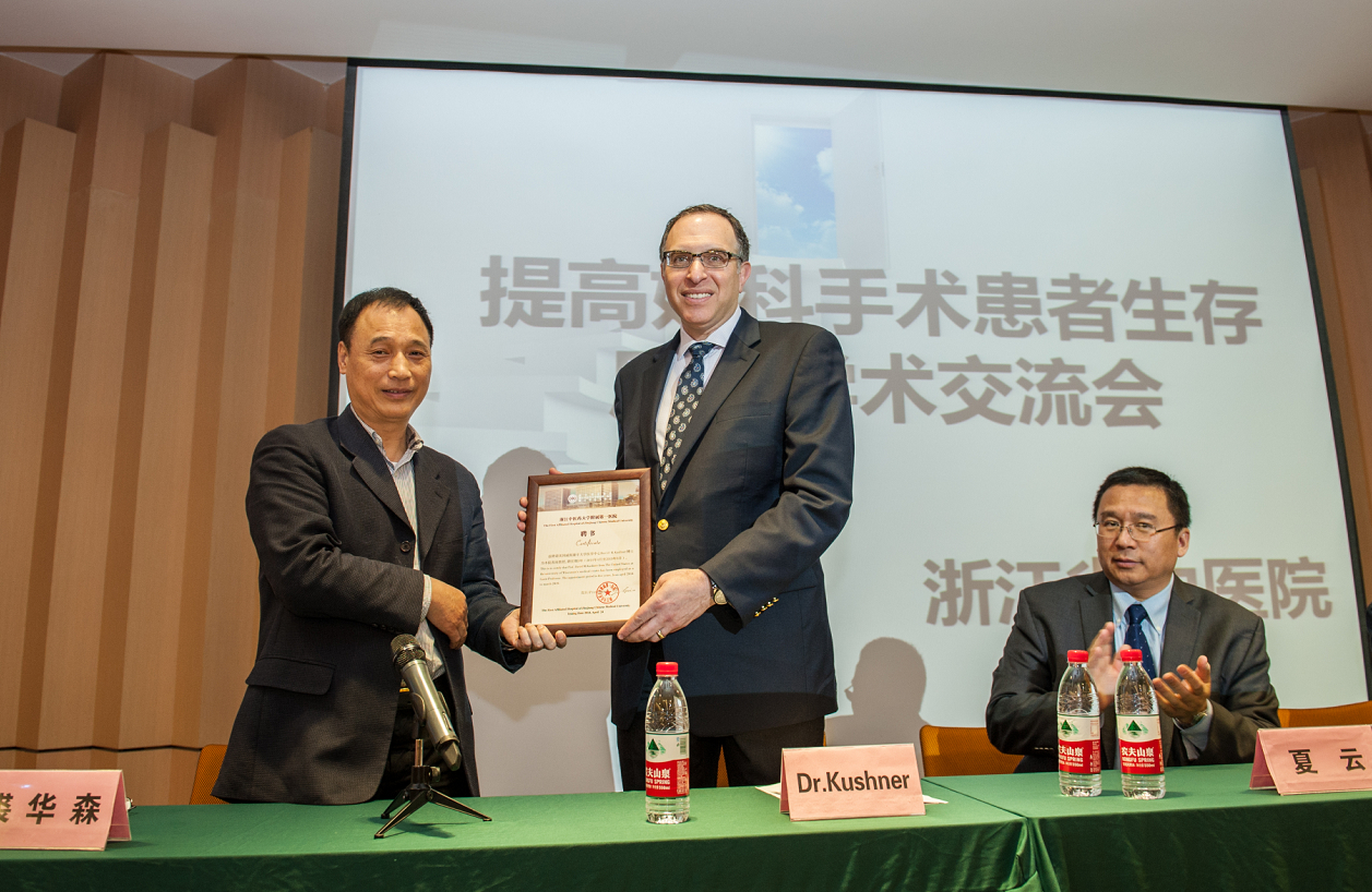4月26日,医院在学术报告厅成功举办了全省中医院系统提高妇科手术患者生存质量学术交流会。会议邀请了美国威斯康辛大学知名妇科专家Dr.Kushner博士、美国俄亥俄州立大学妇产科麻醉界知名专家夏云教授讲课,全省各级医院妇科专家及同仁150余人参加了交流会。 开幕式上, 裘华森副院长对远道而来的Dr.Kushner博士、夏云教授以及参会的全省同道表示热烈的欢迎,并代表医院授予Dr.Kushner博士本院客座教授聘书。他说,医院妇科经过几十年的传承发展,形成了裘氏妇科、宋氏妇科等具有鲜明中医特色的学术流派。近年来,在蒋学禄主任带领下,妇科手术技术也获得了快速发展。医院妇科已成为一个具有鲜明中医特色优势、中西医学并重、人才梯队结构合理、综合实力强劲的科室。裘院长指出,当前妇科手术技术日趋成熟,术中术后如何呵护生殖健康及提高生存质量已逐渐成为妇科医生关注的新课题,医院妇科举办妇科手术患者生存质量学术交流会,目的是希望通过搭建这样的平台,与我省各级医院同道共同分享妇科领域新技术、新进展,促进共同发展。