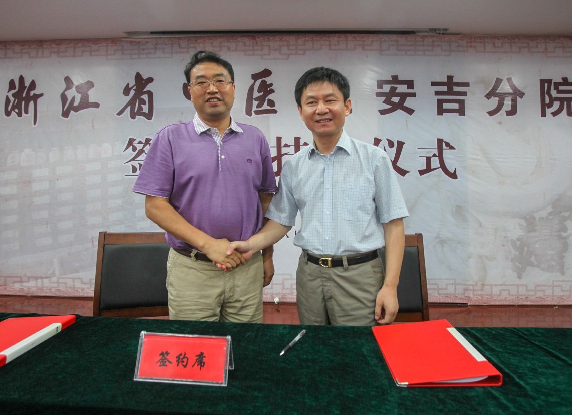 8月22日,医院与安吉县人民政府签订了合作医疗协议书。浙江中医药大学副校长方剑乔,医院管理处副处长陈华,湖州市卫生局副局长魏明,安吉县人大常委会副主任黄先国、副县长任贵明、县政协副主席张为华,医院院长吕宾、党委书记曹毅、副院长沈敏鹤、党委副书记黄琦等领导出席了签约仪式,并为浙江省中医院(浙江中医药大学附属第一医院)安吉分院揭牌。这标志着我院与安吉县中医院正式结成紧密型合作办医关系,也是继我院与松阳县人民医院、松阳县中医院之后,医院与基层医院的再次结缘。
