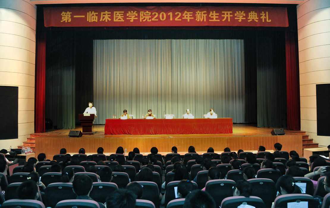 9月17日上午10时,我院2012年新生开学典礼在学校23号楼学术报告厅隆重举行。院长吕宾、副院长许茂盛,教学部负责人、学院团委、学生工作办公室负责人以及教师代表等参加了典礼。 典礼上,吕院长发表了热情洋溢的讲话,并代表第一临床医学院(附属第一医院)2000余名教职员工对全体新同学的到来表示了热烈欢迎。吕院长还介绍了学院、医院的办学规模、发展历史和现状,对新同学提出了殷切的希望,希望通过学院的培育和自身的不懈努力,每一位同学都能成为勇于创新、知行合一、脚踏实地的医学继承人。