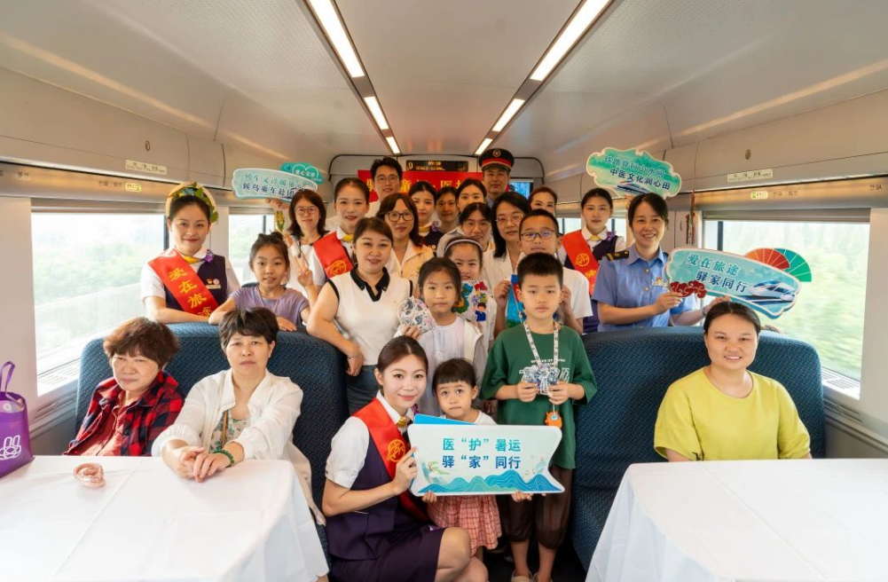 暑期运输大幕拉开,铁道线上的“小候鸟”们成为一道灵动风景。7月14日,来自浙江省中医院全科第一党支部、肾脏病科党支部、儿科党支部等多支部党员同志组成医护团队,联合杭州客运段高铁四车队“驿家亲”乘务组在D2222次列车上开展“驿路童行、医护相伴”主题党建联建暨高铁义诊活动,一场融合健康关怀与趣味互动的旅程由此启程。