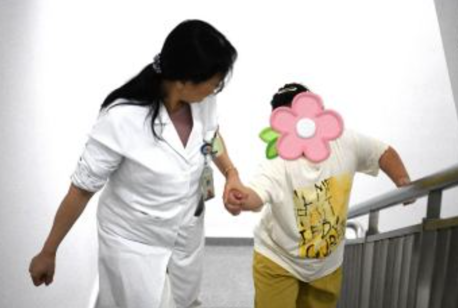 “再上去一趟!加油!”护士拍拍一名孩子的肩膀鼓励道,“坚持住,别坐下。”浙江省中医院钱塘院区病房的楼梯间内,训练中的孩子渐渐不能坚持,一屁股坐在地上。一直陪伴在孩子们身边的儿科副主任王利玲,伸手将她扶了起来,“来,我们一起再走一趟!”