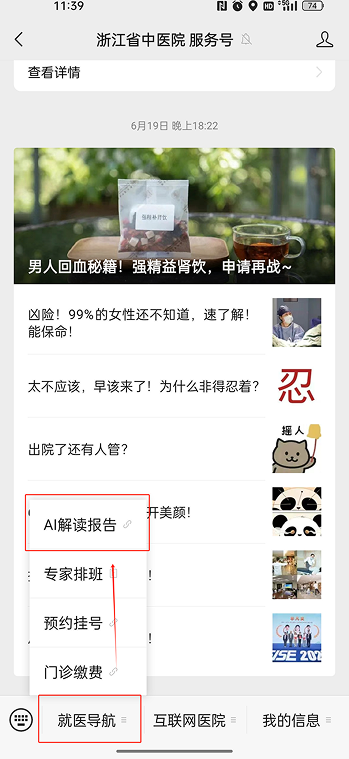 操作流程:关注公众号→就医导航→AI解读报告
