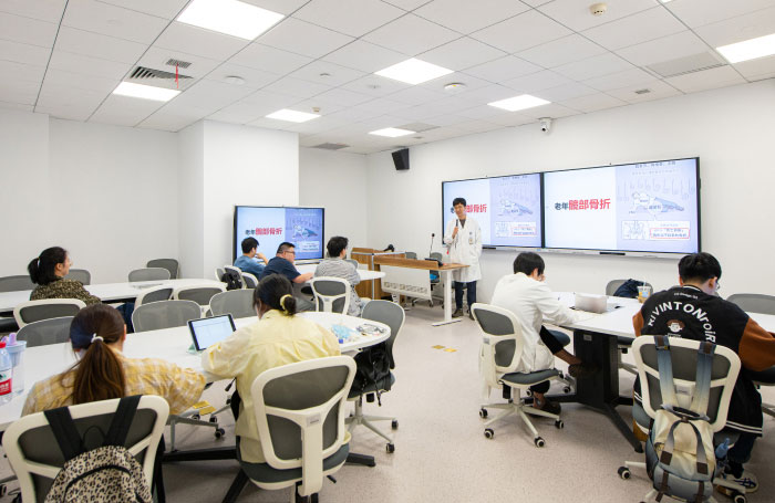 医院(学院)坚持立德树人的根本任务,基于中医人才培养“经典、传承、临床、创新”四要素,构建中医学本科“四维一体”(读经典-跟名师-强临床-善创新)培养体系,实施“五环融合”(经典+临床、院校+师承、线上+线下、常规+特色、专业+思政)培养策略。依托中医创新人才培养示范基地,创建“见习医生制”教学模式,贯彻“早临床-多临床-反复临床”的医学教育要求;利用“名院-名科-名医”的优势,开设“教学示范门诊”,通过医教协同,培养基础理论扎实、经典功底深厚、临床思辨及动手能力强的中医临床人才。数字化赋能中医药教学辅助平台,汇集名中医临床经验,实现中医基础理论在线查阅,做到名老中医经验智能化传承,提升教学质量和水平。打造沉浸式智慧教学场景,为师生提供互动性强、资源面广、个性化支持的新型教学空间,营造多元、自主、灵活的学习方式,让实训教学智能化。