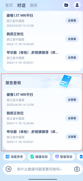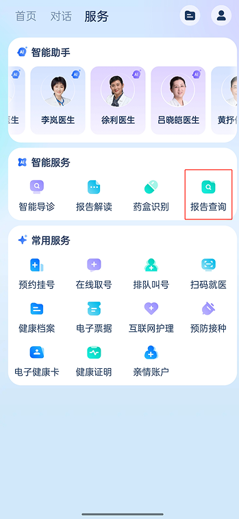 操作流程:安诊儿APP→智能服务→报告查询